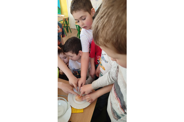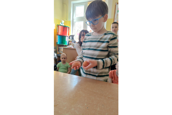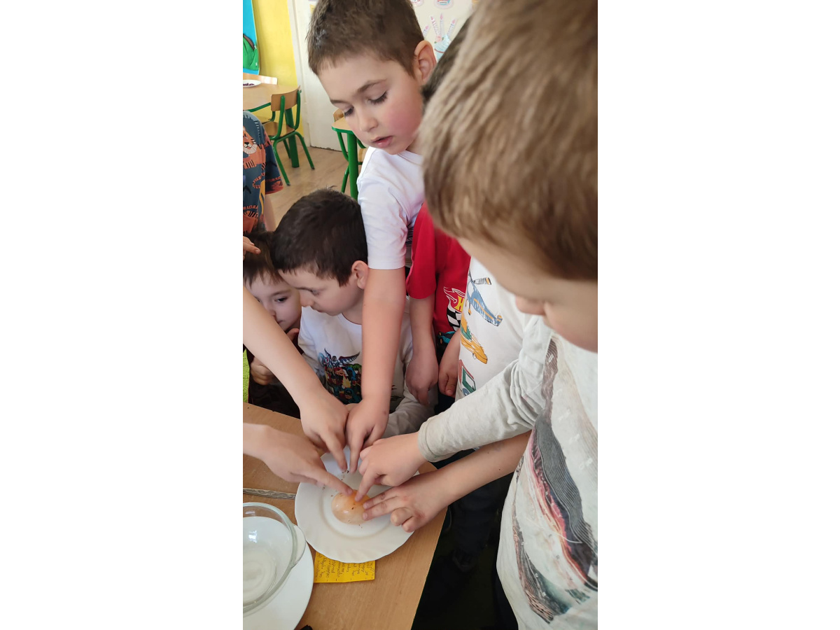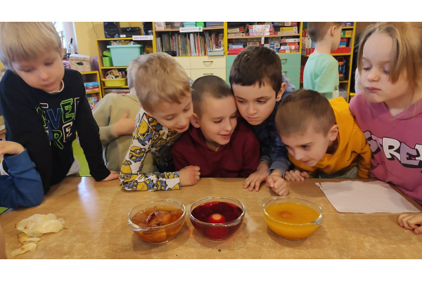 - Gumowe jajo czyli jajko w occie - pokazanie reakcji chemicznej (kwas + wapno) oraz zrozumienie budowy skorupki jajka.