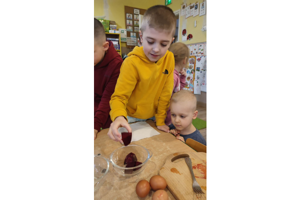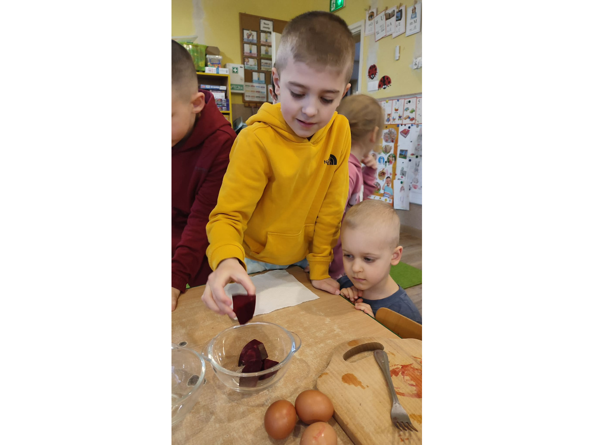 - Naturalne farbowanie jajek (burak, kurkuma, łupiny cebuli)