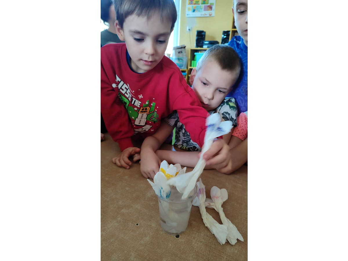 Celem jest pokazanie zjawiska kapilarności (czyli wędrówki wody w papierze) oraz tego jak woda rozpuszcz i przenosi barwnik.