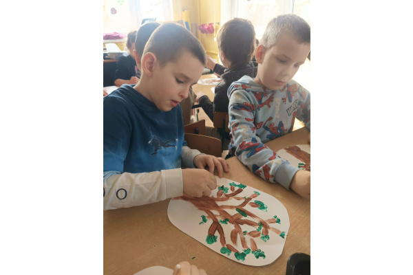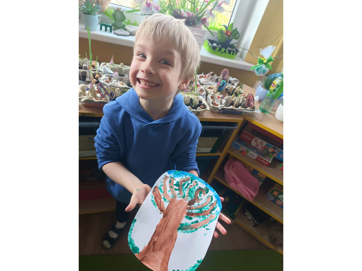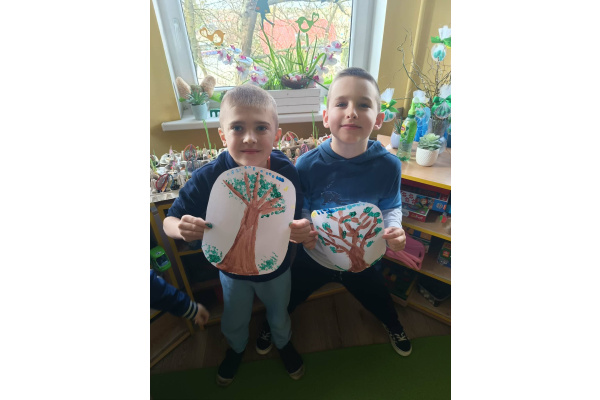 PLASTUSIOWO "Wiosenne drzewo malowane kropkami"